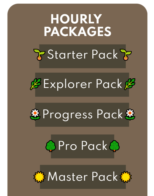 Ideal for those who prefer a structured and consistent pace. You can choose between monthly, semiannual, or annual plans, designed to help you stay consistent and achieve your goals step by step. Each plan has a specific duration, and the hours must be used within the established period.
